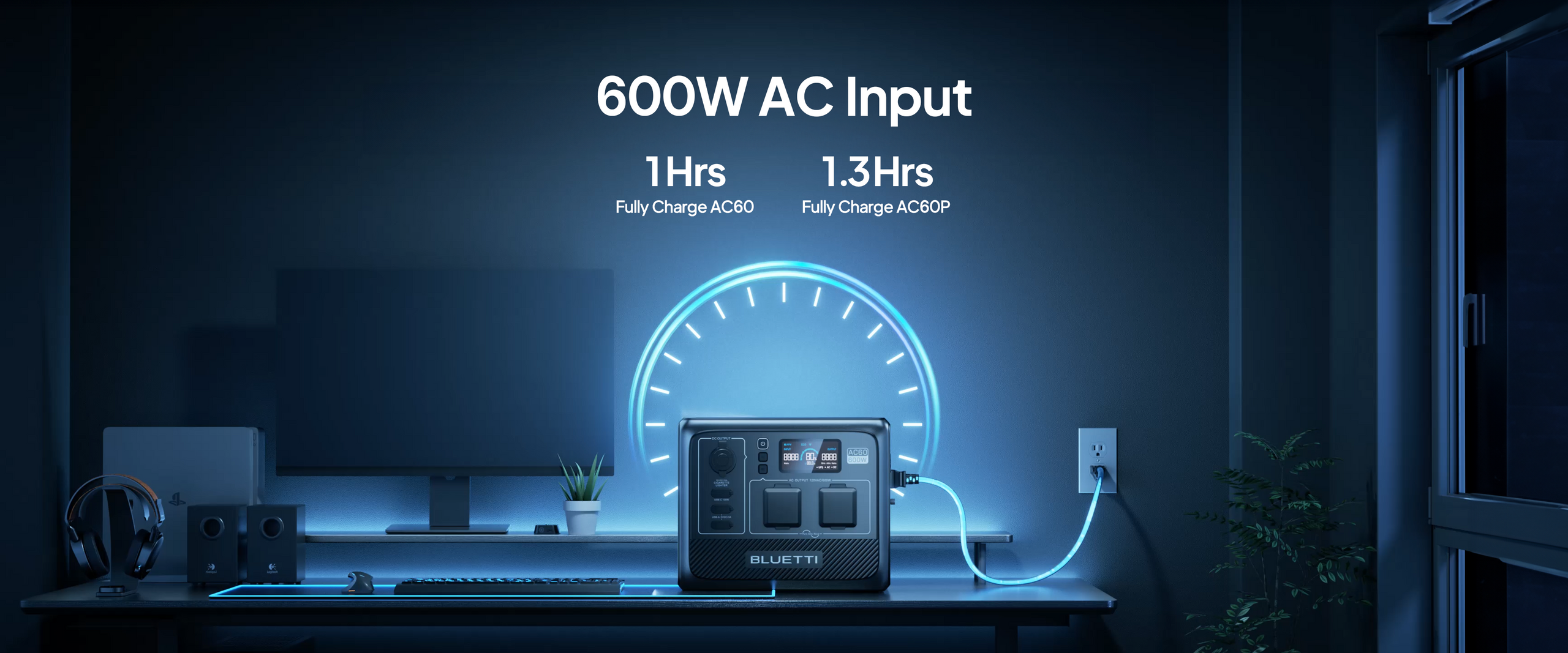 The AC60 / AC60P packs with the safest LiFePOâ‚„ battery for over 3,000 cycles before reaching 80%. It can be paired with two B80 / B80P expansion batteries (806Wh each) for a growing capacity – plenty of power for short trips or long periods away from the grid.